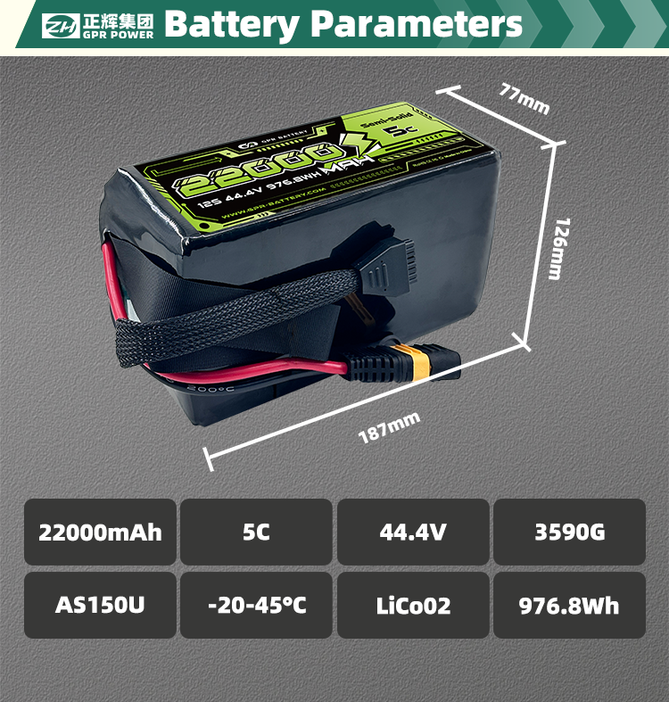 | Model Number | 22000mAh 12S 44.4V 5C | OperatingTemperature(°C) | -20 - 45 |
